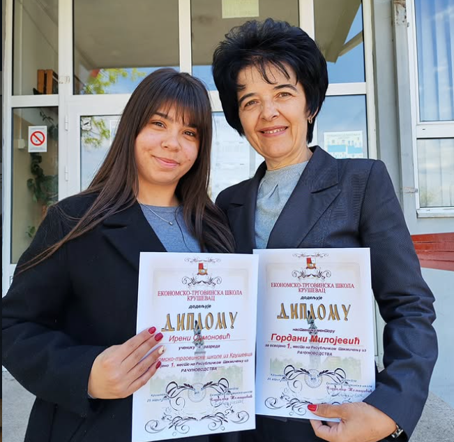 Ученица Економско-трговинске школе из Крушевца остварила је изузетан успех на Републичком такмичењу из рачуноводства, које је одржано 24. и 25. априла 2026. године у Крушевцу. Овим резултатом настављен је континуитет врхунских постигнућа, а посебно истичемо да је трећа година заредом наша школа освојила једно од прва три места.
